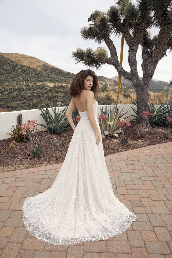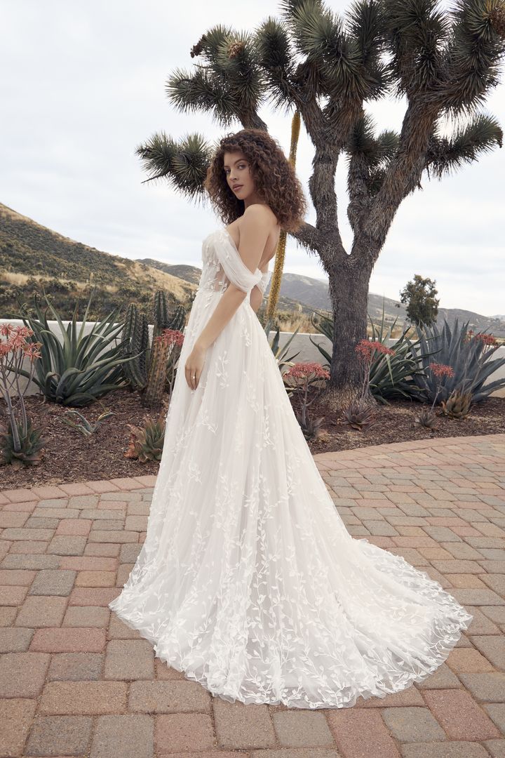 Indulge in the ethereal elegance of Calico, a gown designed to transport you to a world of enchantment on your special day. The A-line silhouette and modified strapless sweetheart bodice of Calico exude timeless beauty and sophistication. The detachable off-the-shoulder sleeves add versatility, allowing you to create different looks to suit your style and mood. The pleated soft tulle adds a touch of ethereal beauty, creating a romantic and dreamy silhouette that will leave you and your guests in awe. Adorned with a leaf embroidered lace overlay and delicate beaded trimming along the bodice and waistline, Calico showcases intricate craftsmanship that adds depth and texture to the gown. Each detail is meticulously placed, creating a captivating effect that will make you feel like a true goddess. With a 14-piece boning count, Calico offers impeccable structure and support, ensuring a flawless fit that celebrates your natural curves. The sheer bodice adds a hint of allure, while the option to order with front bodice lining provides customization according to your preferences. To complete your look, we offer a matching fingertip veil that perfectly harmonizes with the gown.