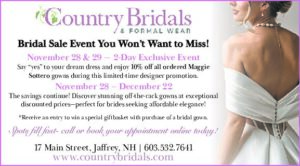 Call our Jaffrey, NH bridal shop: 603-532-7641